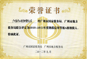 近日,在广州市2010-2011年度纳税信用等级评比中,广州南华工程管理有限公司被广州市国家税务局、广州市地方税务局联合授予“A级纳税人”荣誉称号。